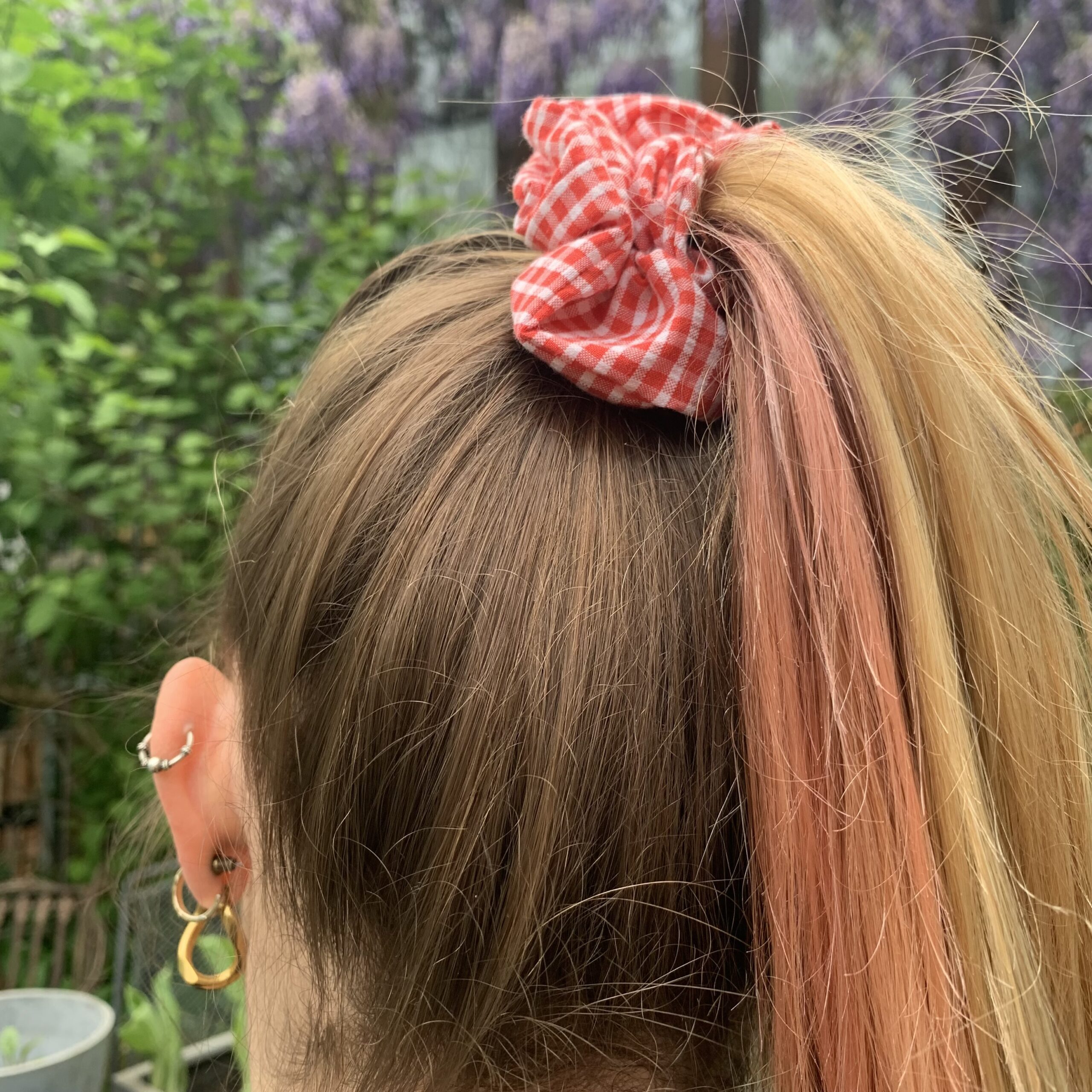 Das Scrunchie kann je nach Haardicke 2-3 mal ums Haar gewickelt werden