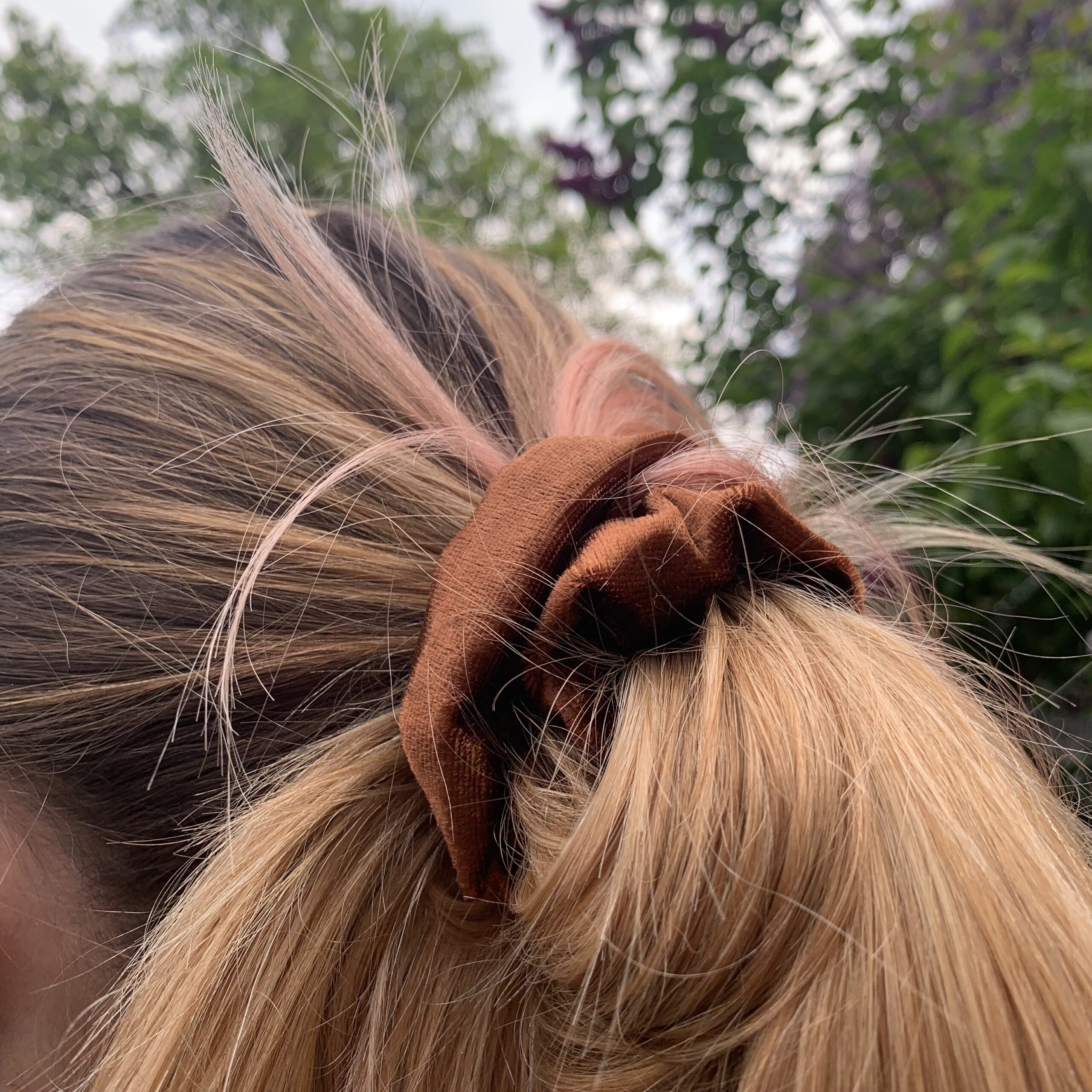 Das Scrunchie kann je nach Haardicke 2-3 mal ums Haar gewickelt werden